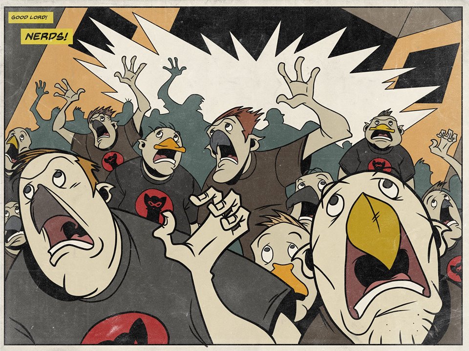 Krush McNulty and The Beakmen of Nerdilon VII is about a world in political torment over sci fi movie casting choices. It also introduced a core constituent of the Krush Universe that stands right up there next to the personal reconstitutor: Nerds.